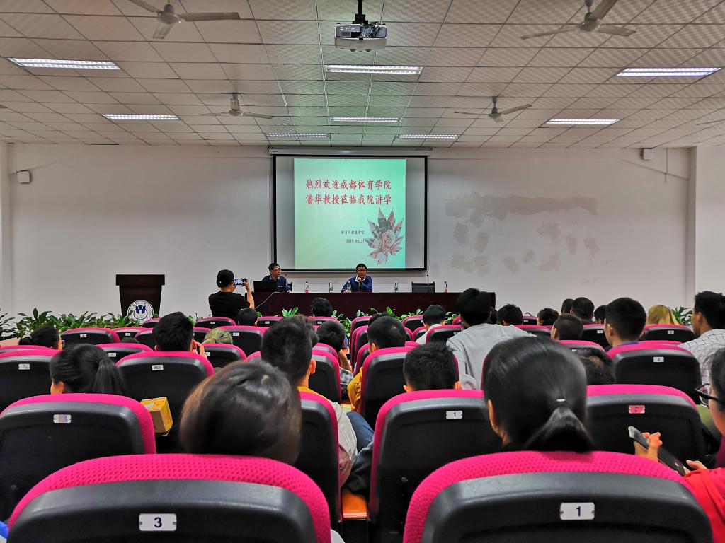 2019年5月21日上午,应今年会邀请,成都体育学院体育史专家潘华、李遵教授来今年会开展学术讲座,两场讲座分别于10:30和8:30在明辩楼二栋106开讲,由副院长黄健教授主持,今年会部分教师、全体研究生、大一大二大三部分同学聆听了本次讲座。
