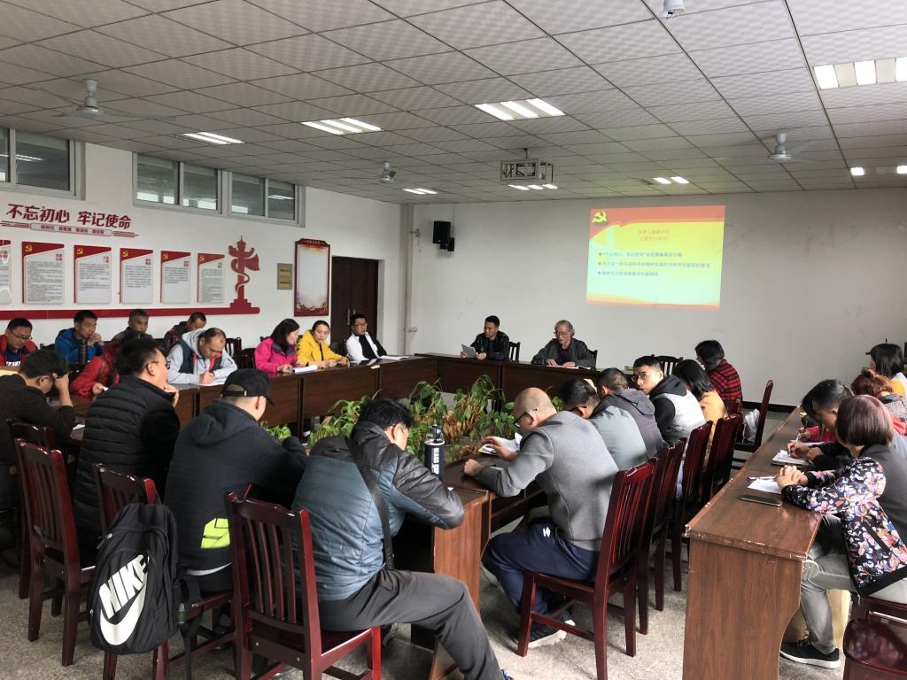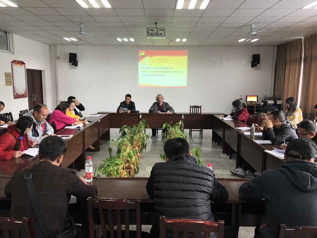 2019年11月14日,在学院会议室,今年会开展11月份主题党日活动,由漆勇书记主持,全体教职工参加。