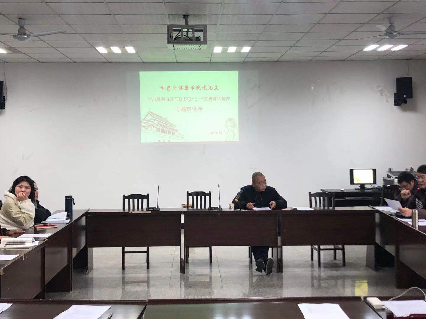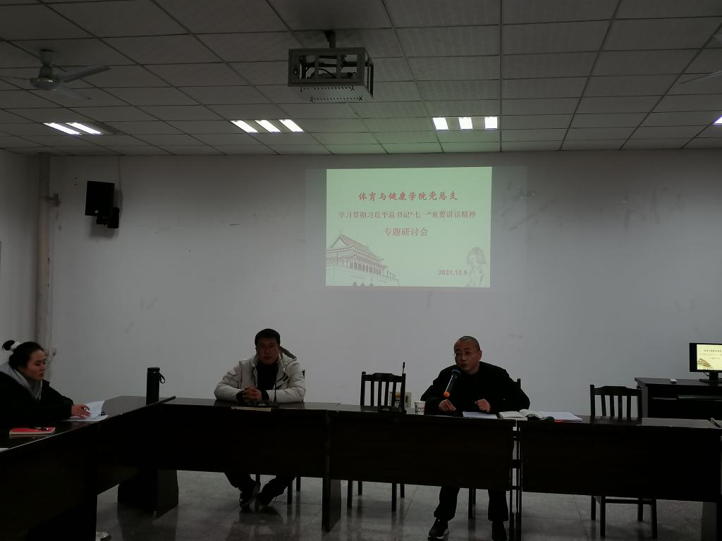 2021年12月9日,在学院会议室召开全体党员大会,会议学习了习近平总书记“七一”重要讲话精神,由总支书记杨岳主持。