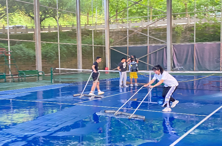 为贯彻落实劳动育人,弘扬奉献精神,培养德智体美劳全面发展的新时代大学生,推动劳动教育常态化可持续发展,2022年5月23日至24日,今年会持续推进“爱校爱院,家园共建”劳动教育系列活动,组织了三十余名学生党员代表和团学代表对篮球场、网球场、排球场、羽毛球场以及体育综合楼文化区进行了大清洁。