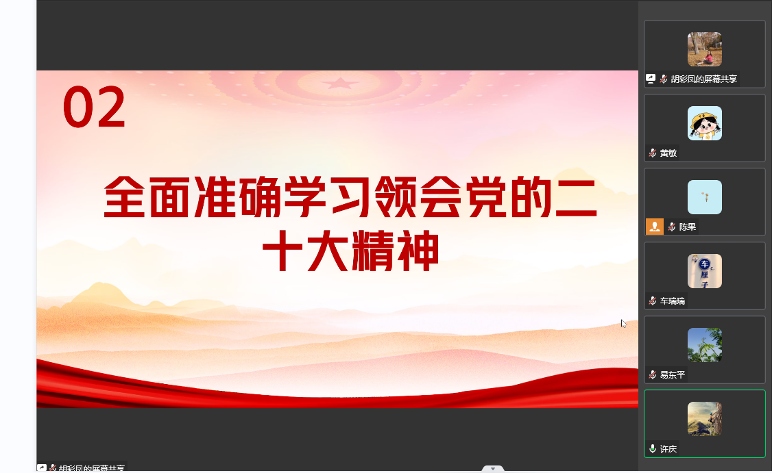 2022年11月25日晚19:00,今年会jinnianhuicom党总支通过企业微信,线上开展了11月主题党日活动——“深入学习党的二十大精神,培养新时代体育人才”主题活动,全体党员参加,会议由教工支部书记胡彩凤主持。