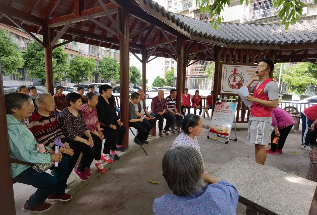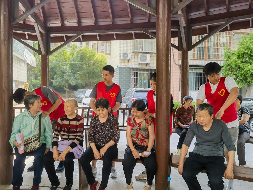 活动中,学生党员易明冬进行了老年健康知识宣讲,主要讲解老年人如何预防高血压、糖尿病等慢性疾病,以及介绍了缓解和放松普通腰酸背痛的方法。随后,党员同志与志愿者们为社区老人进行了推拿按摩。
