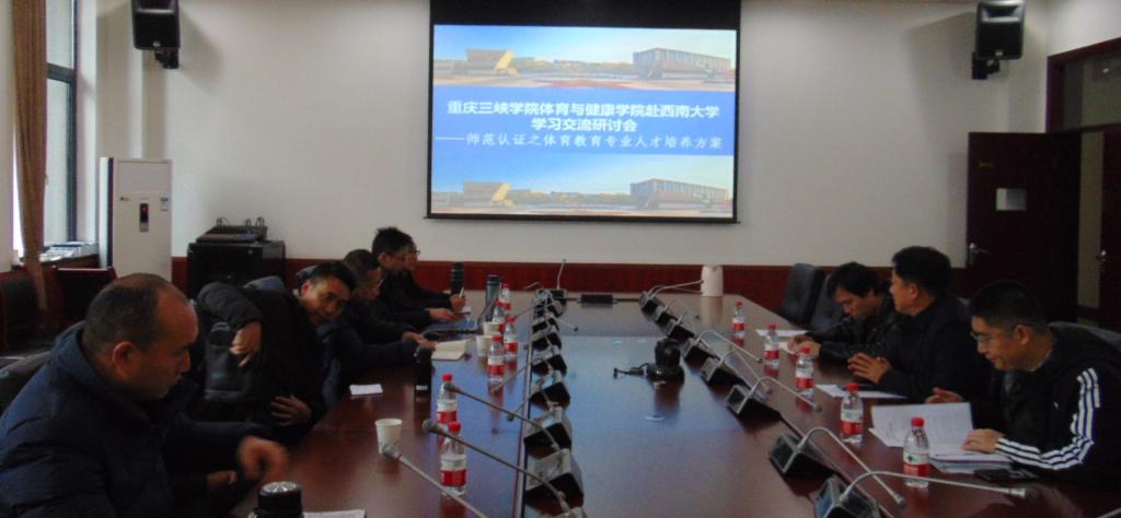 12月27日上午,在重庆师范大学体育与健康科学学院与党总书记杨祖涛、副院长何强及相关教师进行深入座谈交流,双方就师范认证的具体要求、人才培养方案的修订、实践教学、毕业论文等方面的具体举措和做法进行了深度的交流。双方希望以后能加强沟通与交流,进一步推进专业发展及师范认证工作。