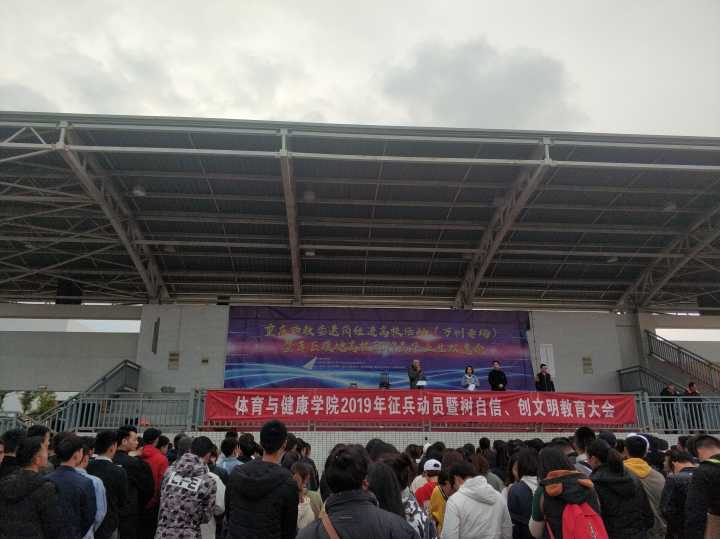 2019324日下午在百安校区田径运动今年会召开2019年征兵动员暨树自信、创文明教育大会党总支书记漆勇、学工办副主任胡彩凤辅导员陈果、佘港,班主任何兴权、陈亿、许庆、李文亚、郑晓老师出席会议,全院学生参加,会议由学工办副主任胡彩凤主持。