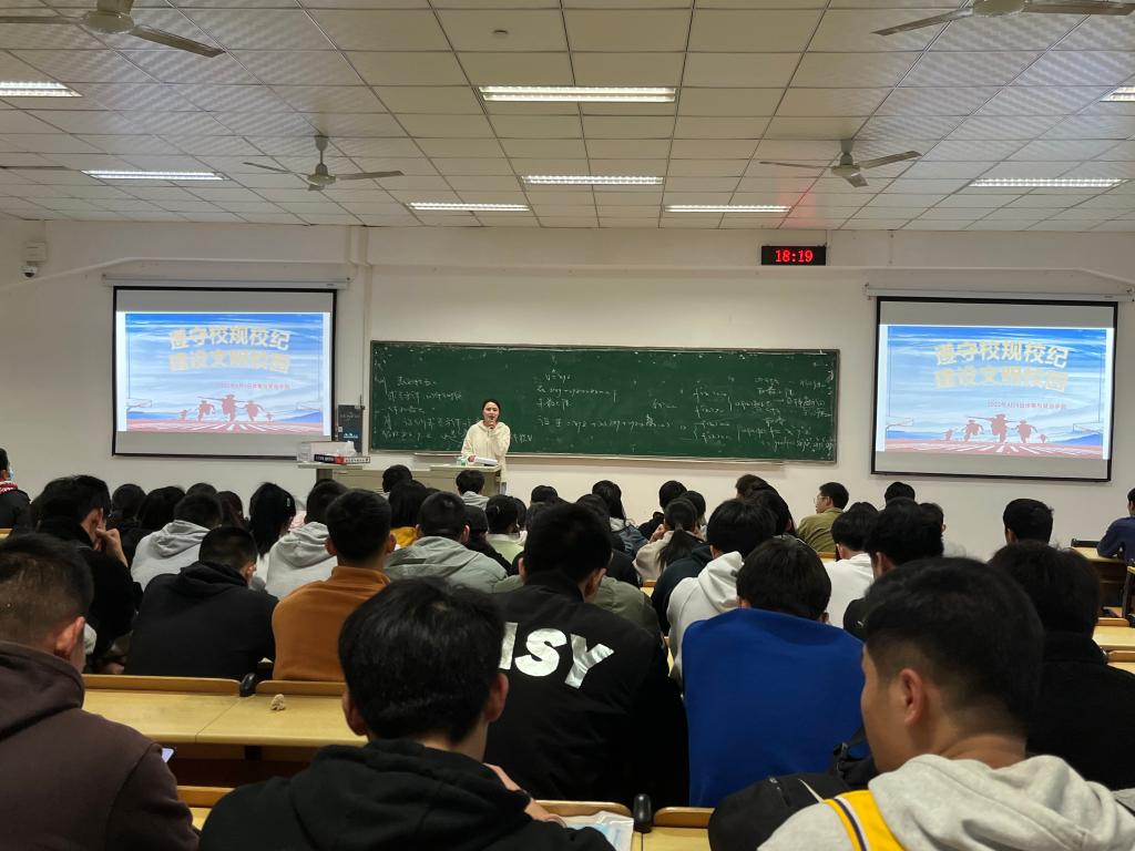 会议内容如下:1、清点核实学生返校人数,严查私自租房情况;2、再次通报3月25日学生打架斗殴事件,让同学们引以为戒;3、组织同学们学习《普通高等学校学生管理规定》、《重庆市本专科生国家助学金实施细则》、《今年会官网关于印发《国家助学金管理办法(修订)》的通知》;3、开展法律法规和校规校纪教育,建设文明校园。