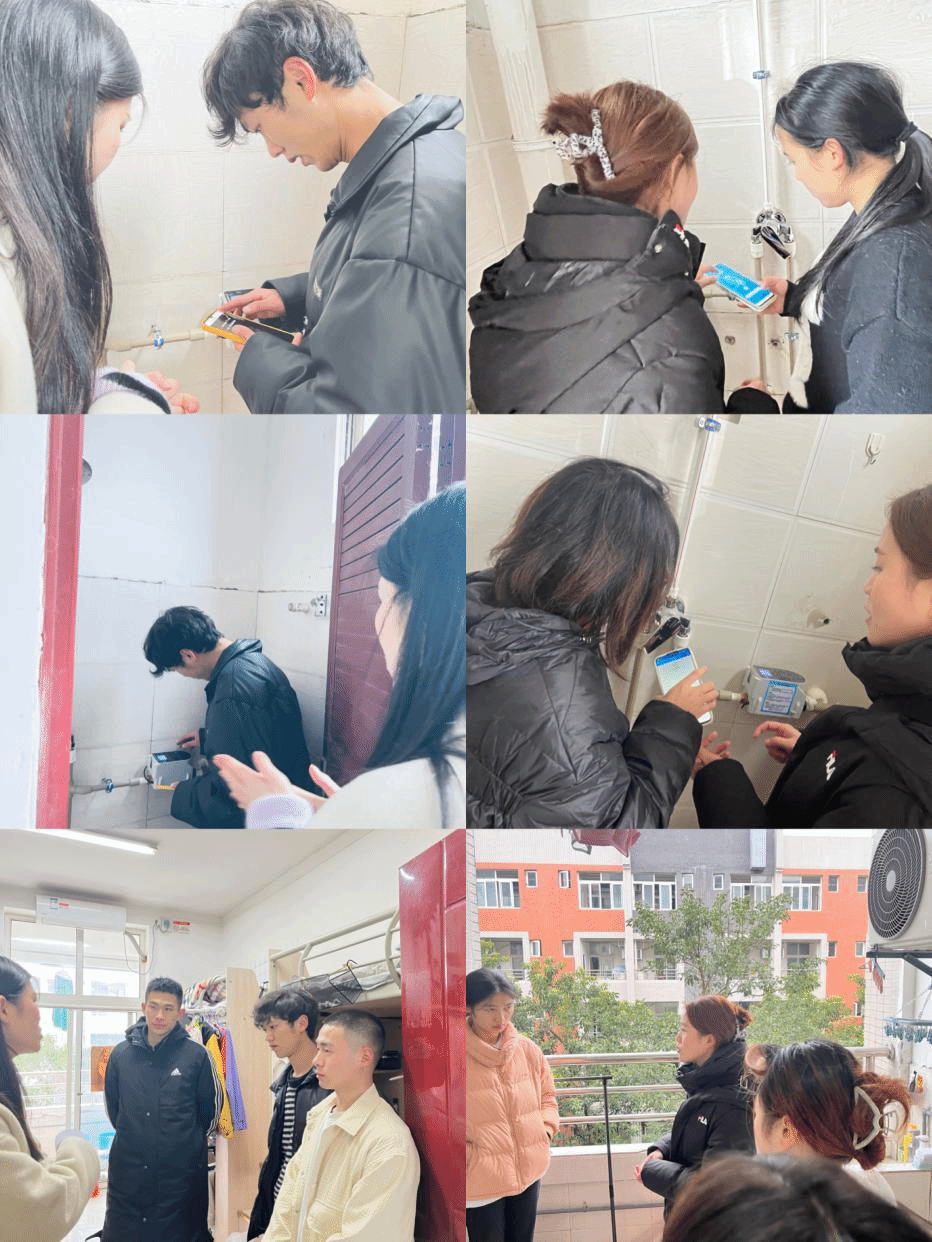(辅导员廖晋饶、卢鑫为学生讲解热水供暖改造优势及注意事项)