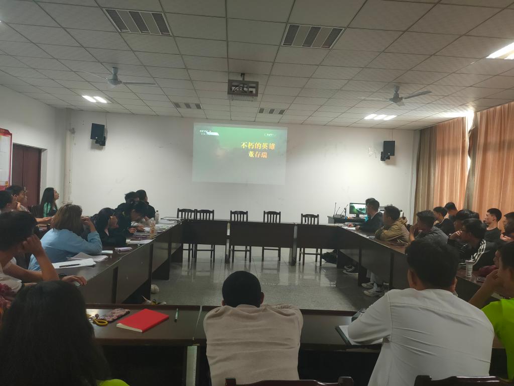首先,党员同志们纷纷讲述了自己熟知的英雄故事,以及这些英雄形象对自己学习生活的积极影响。随后,党支部书记简单介绍了董存瑞同志生活的时代背景,同学们带着对革命英雄的无尽缅怀之情,观看了《不朽的英雄——董存瑞》纪录片,探寻先烈事迹,激发爱国热情。