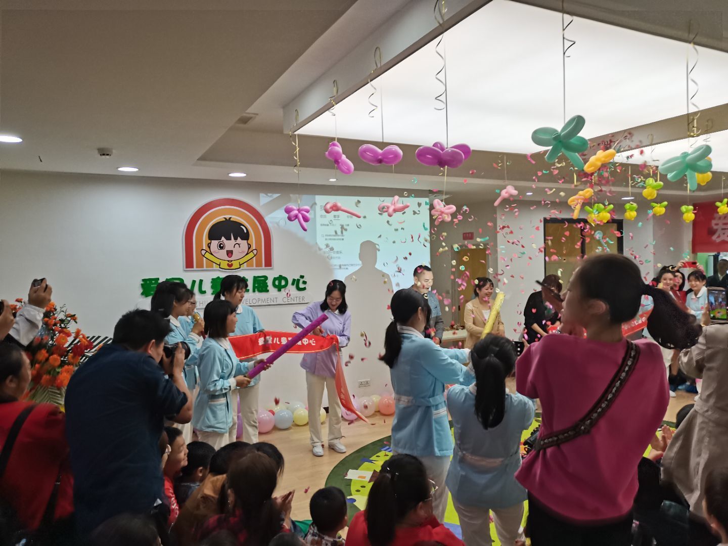 接下来又和自闭症儿童一起进行了一些趣味活动,激发了他们的兴趣。目的是让自闭症儿童能够走出自己的世界,去感受多彩的生活。