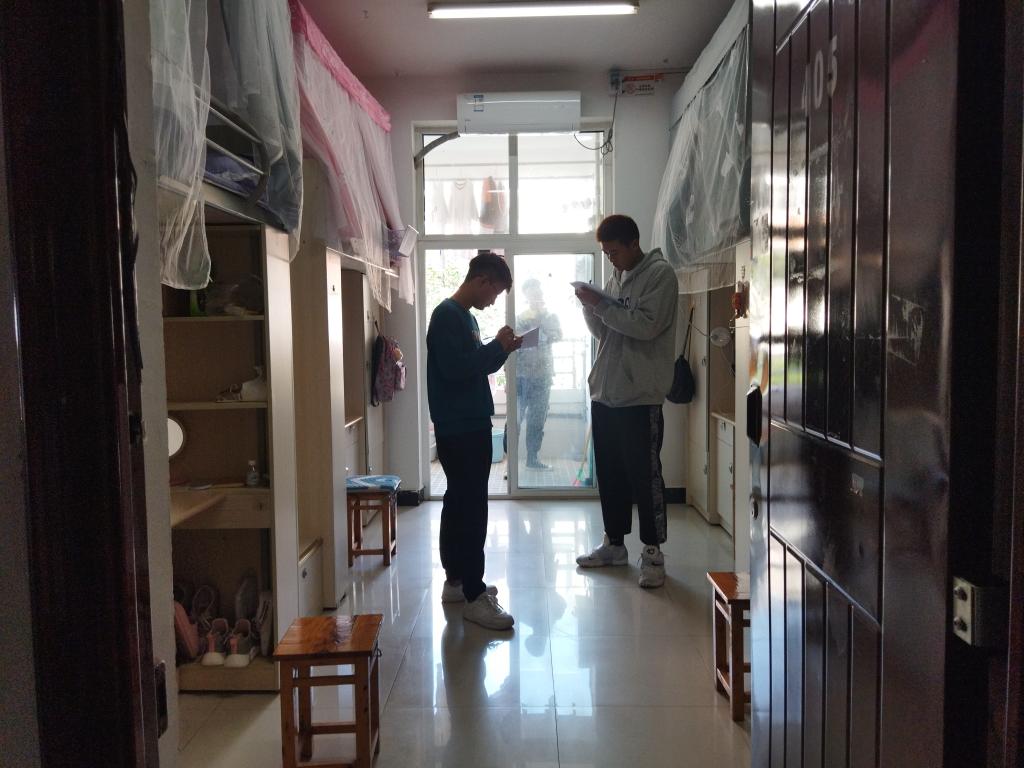 2021年4月22日,今年会jinnianhuicom党总支书记杨岳、学工办主任佘港、辅导员廖晋饶对各个宿舍进行了宿舍安全卫生随机抽查,这次主要检查了同学们的宿舍安全与卫生。检查结果是宿舍整体来说符合标准,且并未发现违禁物品。但都存在同样的问题,就是物品摆放不够整齐,地面较为脏乱。