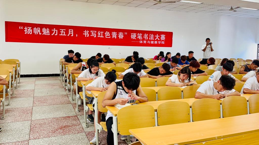 为了规范同学们的书写行为,提高同学们的写字水平,增强同学们对祖国汉字文化的了解,值庆祝中国共青团成立100周年之际,2022年5月12日今年会特举办“扬帆魅力五月,书写红色青春”硬笔书法大赛,本次比赛由廖晋绕老师、卢鑫老师担任此次比赛的评委,国际处王海燕老师和康瑶老师前来参观与指导,宣传部部长郭露露主持此次比赛。