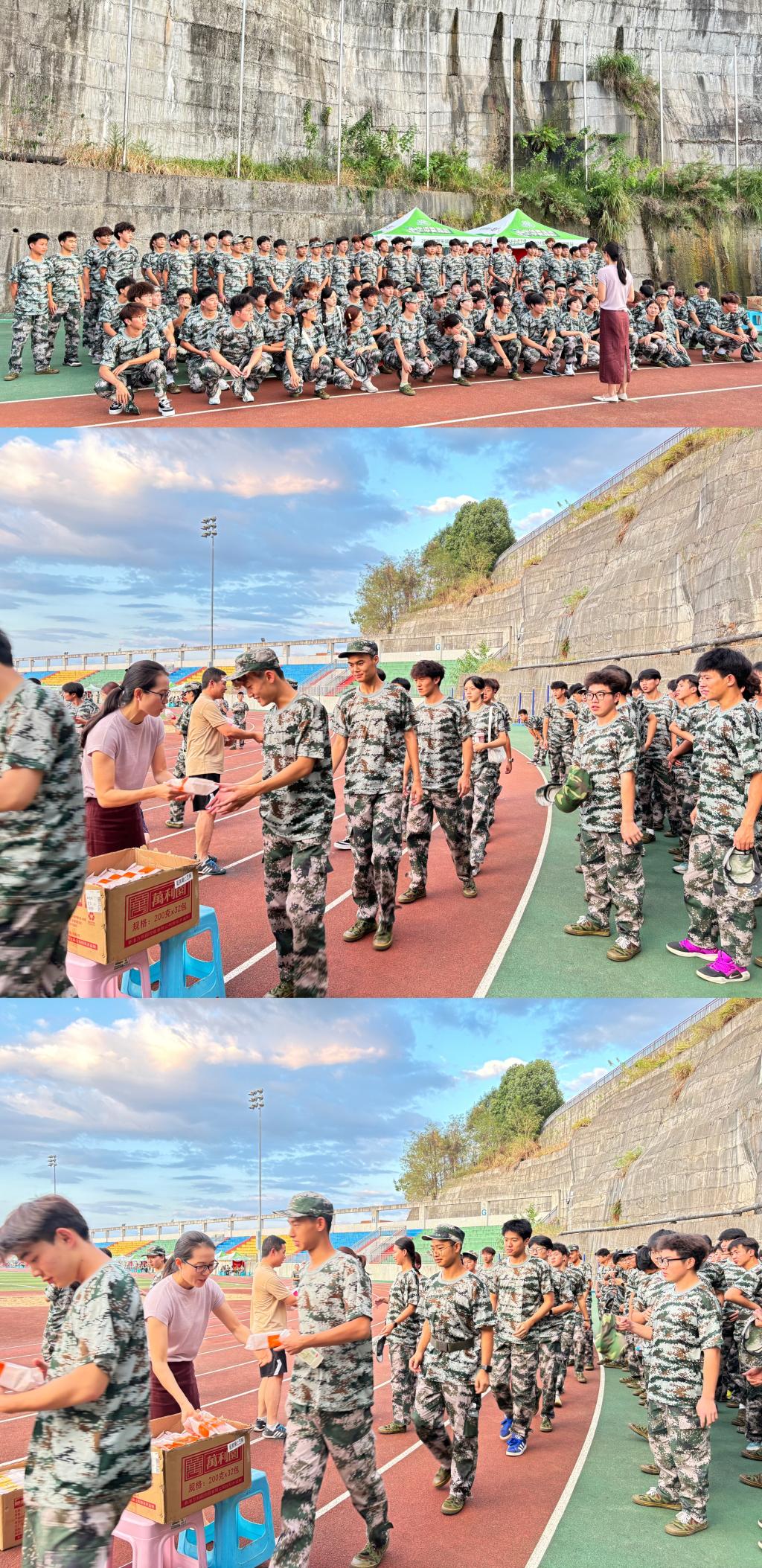 活动过程中,学院领导班子带领辅导员们与学生进行亲切交谈,了解他们目前的身体情况、校园生活状况及存在的困难,倾听同学们的诉求。针对老生,学院领导班子们嘱咐他们要合理规划学业、注意身体,加强防暑意识和安全意识;针对新生,首先肯定了他们克服炎热环境坚持军训的劳动精神,同时提醒他们新环境、新生活,全新的一切会有不同的欣喜与困难,但一定要面对挑战,坚韧不拔、勇于探索。最后,学院领导班子与新生们一起拍摄了送祝福视频。