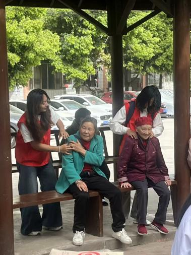 志愿者们为老人按摩捶背,帮要准备午饭的居民们提蔬果、剥胡豆。陪孤寡老人聊天散步,耐心倾听他们讲述过去的故事。运动人体科学专业的同学们还为老人提供健康咨询和营养餐食谱,现场氛围一片祥和,志愿者们用实际行动表达了对老人的关爱。