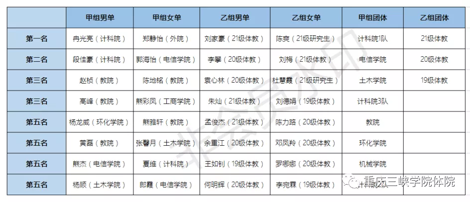 2021年“学院杯”乒乓球比赛成绩册