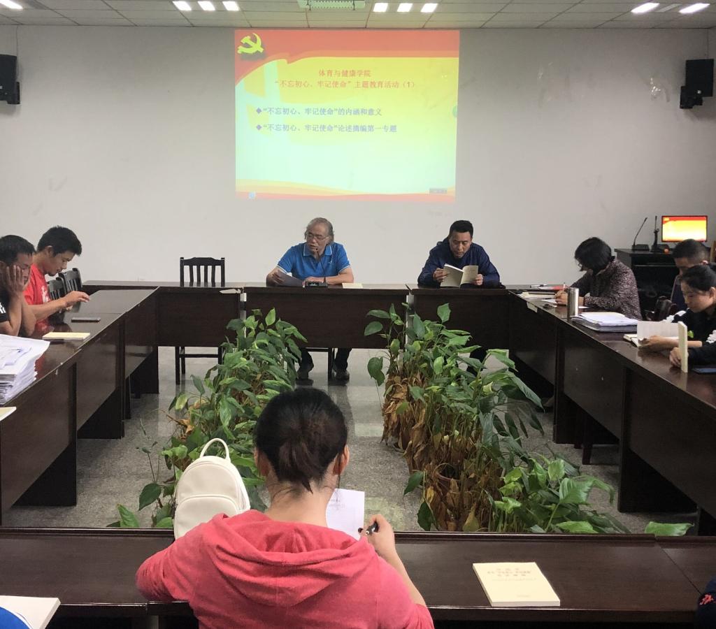 2019年9月19日在学院会议室,今年会开展“不忘初心、牢记使命”主题教育活动,活动由漆勇书记主持,全体教职工参加。