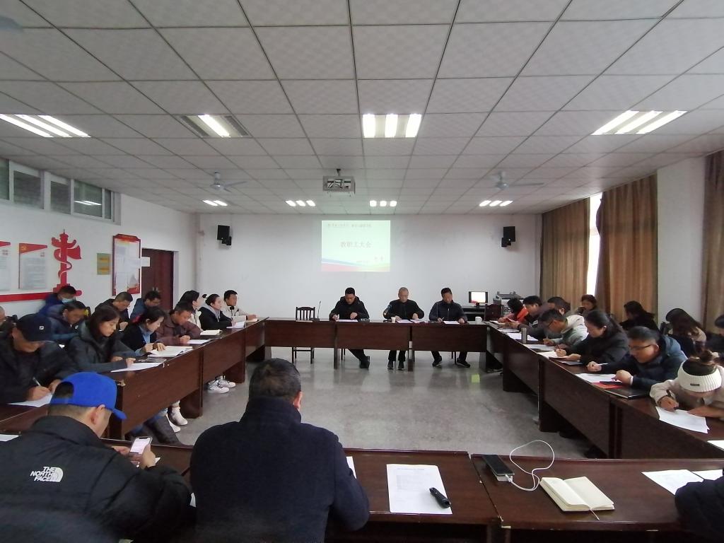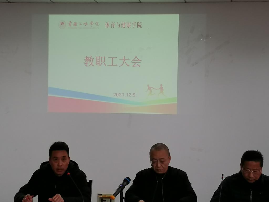 2021年12月9日在学院会议室召开全体教职工大会,会议由总支书记杨岳主持。
