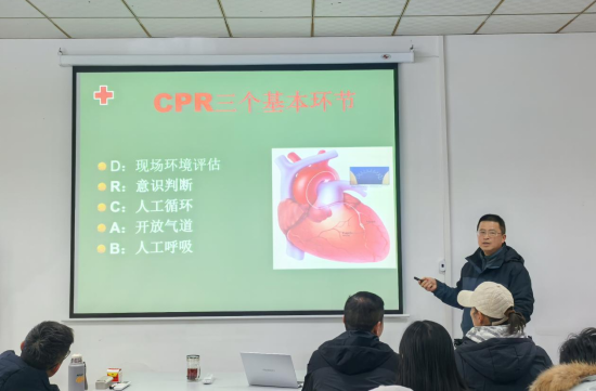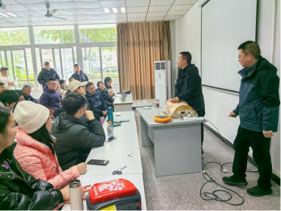 会前,刘建宇副院长强调,学生体质健康测试是学院落实“健康第一”教育理念的重要环节,要求全体教师以高度的责任感确保测试工作科学、规范、安全推进。同时,掌握急救技能是教师应对突发状况、保障学生生命安全的关键能力。培训会上,李广周教授围绕自动体外除颤器(AED)的操作原理、使用场景及心肺复苏术(CPR)的操作要点展开系统讲解,详细演示了胸外按压、人工呼吸的标准流程。在实践环节中,李广周教授组织教师进行心肺复苏术(CPR)的规范化实操训练,利用AED模拟训练机与急救模拟人,严格按照“评估环境、判断意识、胸外按压、人工呼吸、AED除颤”的标准化流程开展演练。