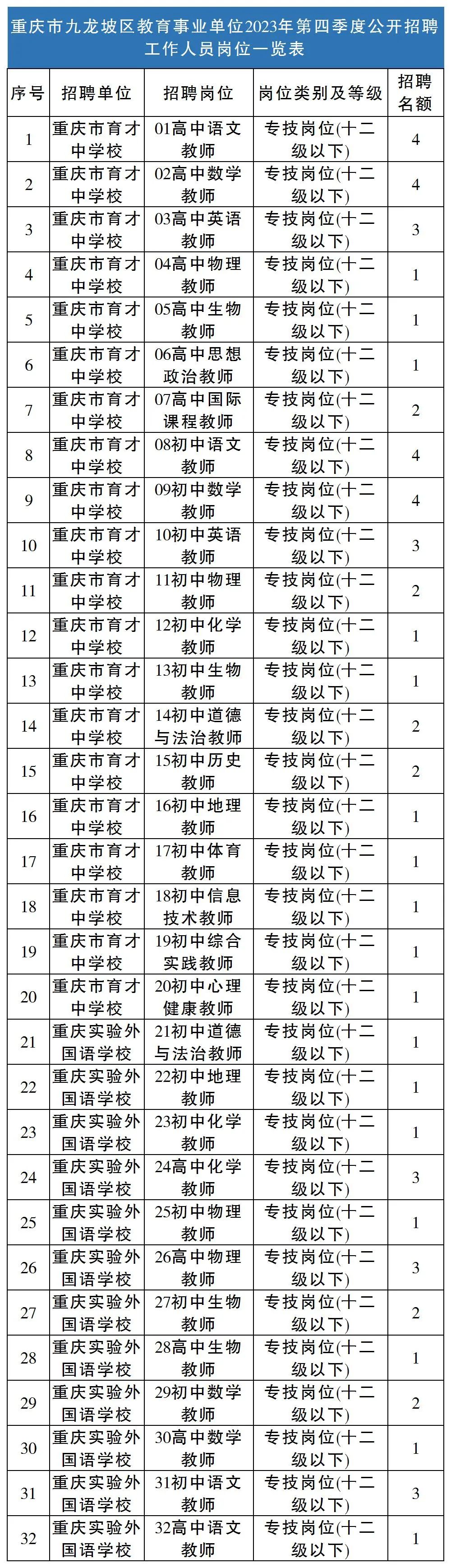 【招聘信息】-重庆市九龙坡区教育事业单位2023年第四季度公开招聘工作人员公告